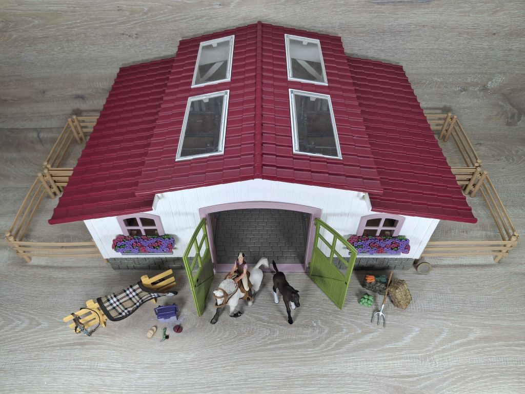 Schleich, Bauernhof, Bauernhoftiere, Pferd, Pferde, Box, Zaun, Stall, Pferdestall, Ponystall, Reiterhof